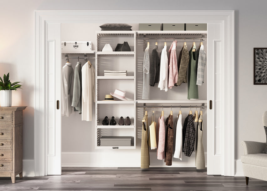 A. All John Louis Home Closet Organizers fit closets up to 10ft. in wall length. With the included parts, a Closet Organizer can do multiple closet configurations spanning a maximum of 10ft, and one configuration spanning 12ft. For closet walls that are 10ft. and below, the organizers can be installed in multiple configurations, as shown in our instruction manuals. This is achieved by how the shelves are positioned to cover the required span. When used in closets where the width is less than 10ft., the excess shelving from any cuts can be used back in the organizer, often as additional shelves within the tower. This allows you to get the most out of your organizer with minimal waste.